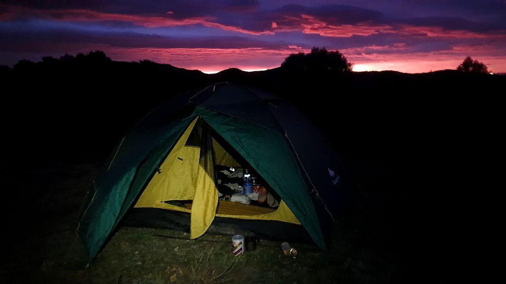 17h38, la tente est soigneusement et solidement fixée au sol, j'y jette mes affaires.
