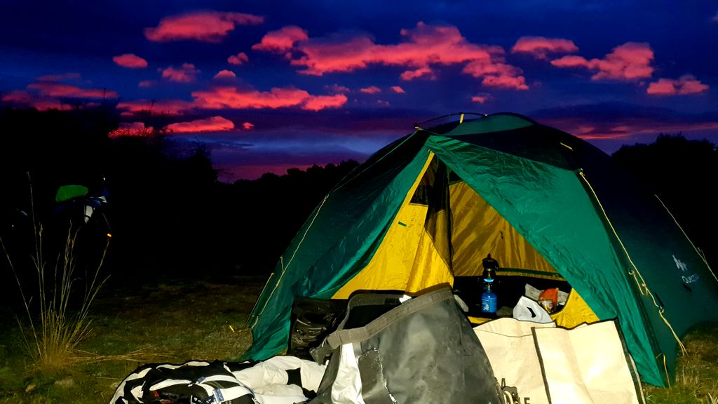 17h38, la tente est soigneusement et solidement fixée au sol, j'y jette mes affaires.